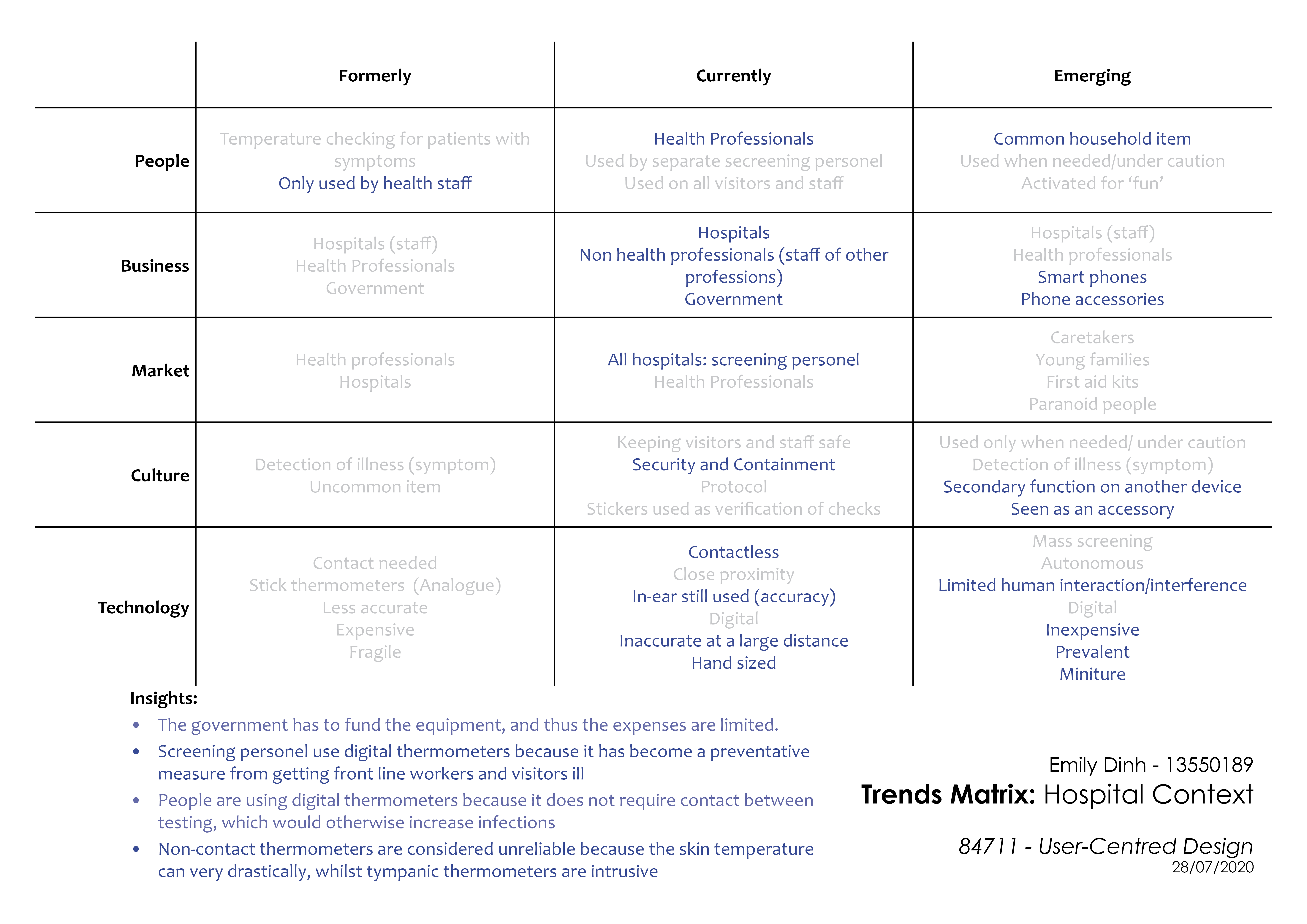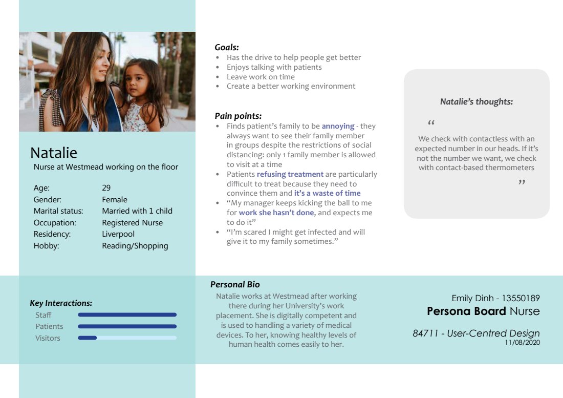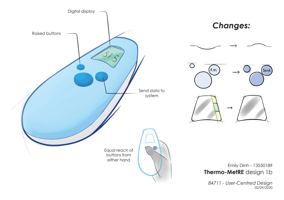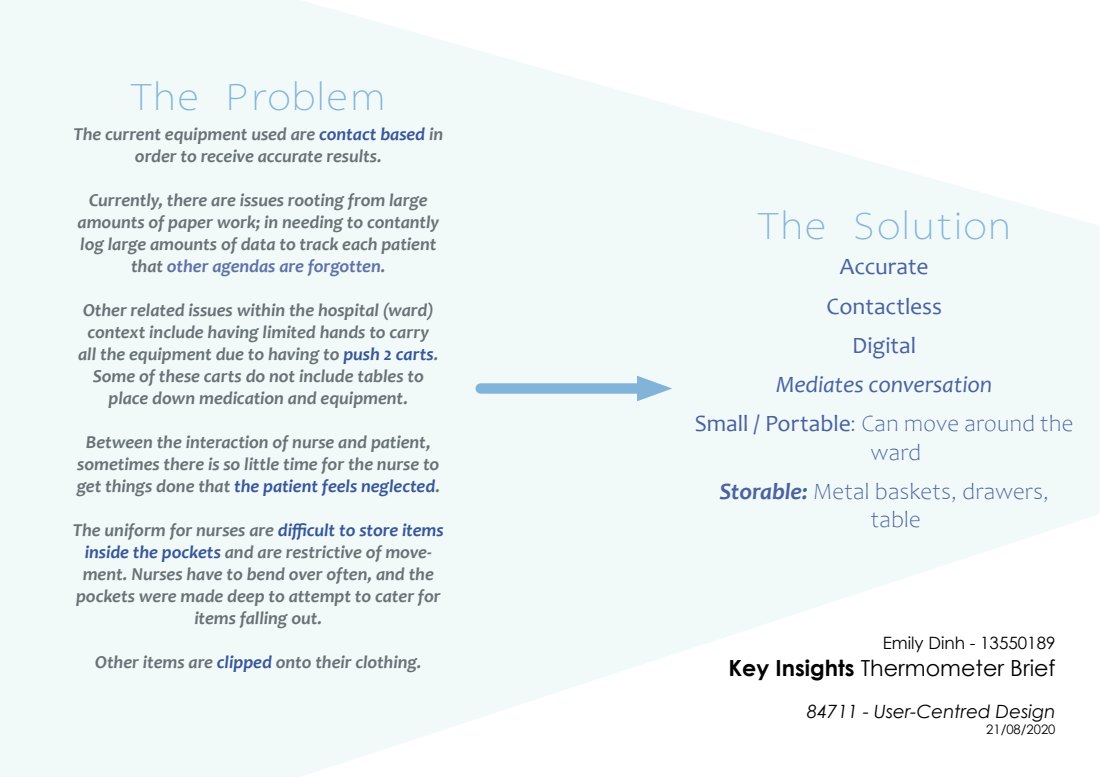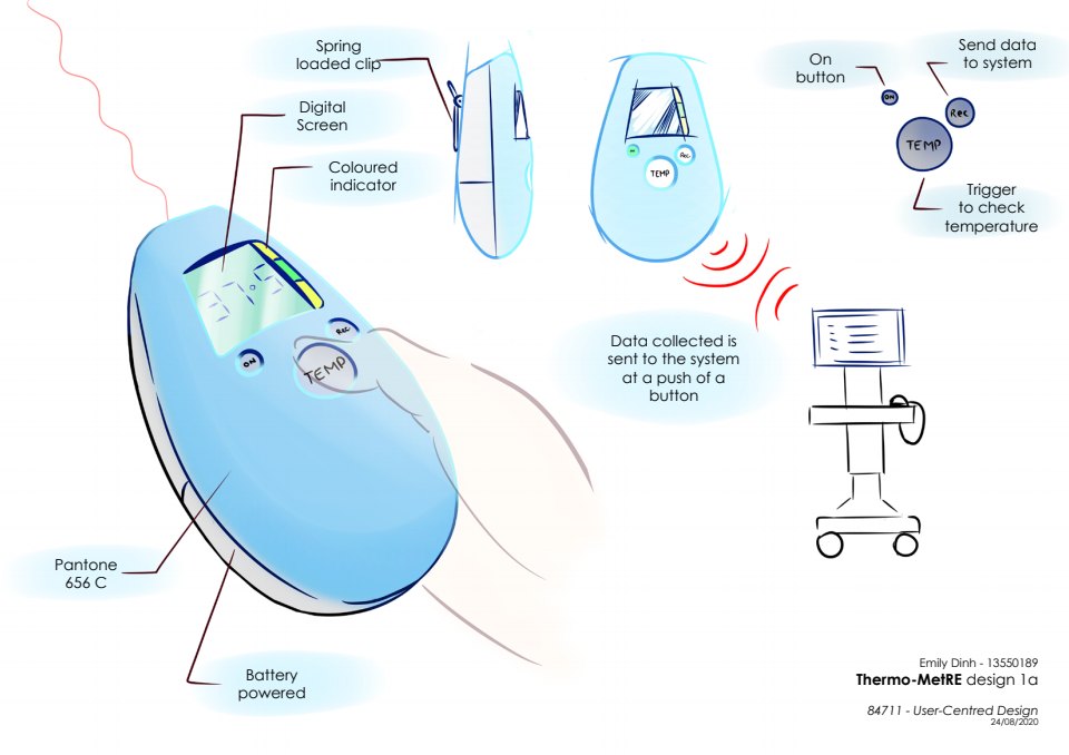 With my given task of designing a thermometer, I chose to design a thermometer that eased the stress from hand documentation, and give time back to the nurses who were currently under the additional stress of COVID-19 patients. The patients, who are able to talk to a more approachable nurse, now have a chance to socialise.